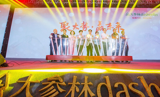 泛亚电竞药业集团董事长刘景萍女士与大参林医药集团董事长柯云峰先生、中国医药商业协会执行会长付明仲女士等嘉宾共同开启了“聚大势•赢未来"大参林工商合作峰会的大幕。